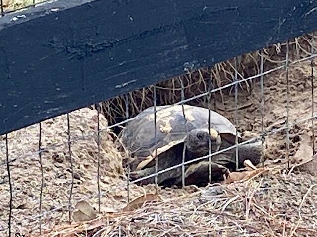 This Gopher Tortoise was close enough to the 4th tee box to see me roll my drive off the green. He looks unamused! There are hundreds of mounds with his relatives just beyond the fence line near holes 3 through 5.